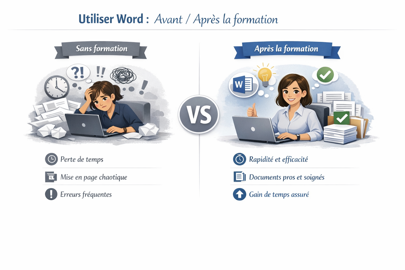 Ces formations Word sont faites pour toutes les personnes qui veulent créer des documents professionnels plus rapidement, sans stress, et avec une mise en forme propre et automatique.